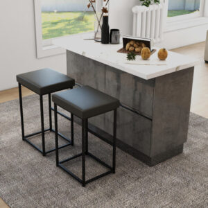 30 Inch Barstools Set of 2 with PU Leather Cover-Gray – Color: Gray