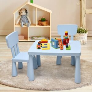 3 Pieces Toddler Multi Activity Play Dining Study Kids Table and Chair Set-Blue – Color: Blue