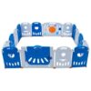 Specifications: Color: Blue Material: HDPE Door fence: 31.5″ x 25″ ( L x W) Game fence: 31.5″ x 24.5″ ( L x W) Single piece fence: 16″ x 24.5″ ( L x W) Net weight: 34lbs Applicable age: 6+ Months Certification: ASTM Packing included: 1 x Multifunctional safety baby playpen 1x User manual
