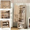 Specifications: Color: Natural Material: MDF engineered wood glass Product dimension: 21″ x 16″ x 68″ (L x W x H) Mirror dimension: 42″ x 13″ (L x W) Net weight: 81 lbs Weight capacity: 99 lbs Package includes? 1 x Jewelry cabinet 1 x Instruction