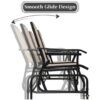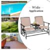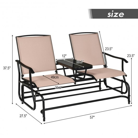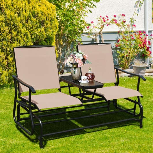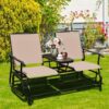 2-Person Double Rocking Loveseat with Mesh Fabric and Center Tempered Glass Table-Brown – Color: Brown