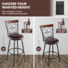 Specifications: Color Black BrownMaterial Metal PU Birchwood SpongeOverall Dimension (with additional tubes) 18″ x 16″ x 42.5″ (L x W x H)Overall Dimension (without additional tubes) 18″ x 16″ x 38″ (L x W x H)Diameter of Seat 16″Seat Height 24″Footrest Height 7″Net Weight of Each Swivel Barstool 15.5 lbsTotal Net Weight 31 lbsWeight Capacity 330 lbs