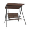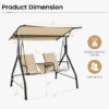 2-Seat Outdoor Cushioned Porch Swing with Adjustable Canopy and Tempered Glass Table-Beige – Color: Beige