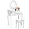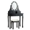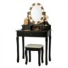 3 Drawers Lighted Mirror Vanity Dressing Table Stool Set-Black – Color: Black