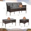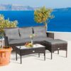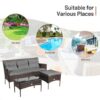 Specifications: Color of rattan: mix brown Material: Rattan steel fabric sponge tempered glass Dimension of sofa: 60″ x 24″ x 33″ (L x W x H) Dimension of ottoman: 20″ x 20″ x16″ (L x W x H) Dimension of coffee table: 28″ x 16″ x 15.5″ (L x W x H) Thickness of seat cushion: 2″ Thickness of backrest cushion: 4″ Net weight: 48lbs Weight capacity of sofa: 800lbs Weight capacity of ottoman: 400lbs Weight capacity of coffee table: 66lbs Package includes: 1 x Sofa 1 x Ottoman 1 x Side table 3 x Back cushions 2 x Seat cushions 1 x Instruction