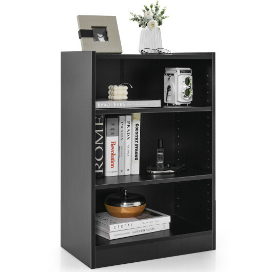 3-Tier Bookcase Open Display Rack Cabinet with Adjustable Shelves-Black – Color: Black