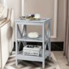3-Tier Nightstand End Table with X Design Storage -Gray – Color: Gray