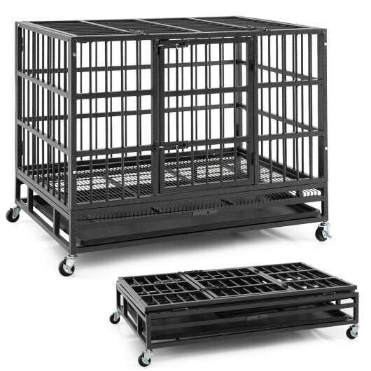 38 Inch Foldable Heavy-Duty Metal Dog Cage with Lockable Rolling Casters and Tray-38 inches – Color: Black – Size: 38 inches