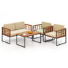 4 Pieces Acacia Wood Outdoor Sofa Set for Balcony Porch Backyard Poolside
