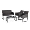 Specifications: Color of PE Wicker Mix Brown Material PE Wicker Metal Tempered Glass Quick Dry FoamDimension of Coffee Table 33.5″ x 18″ x 15″ (L x W x H)Dimension of Each Chair 24″ x 27.5″ x 34″ (L x W x H)Dimension of Loveseat 47″ x 27.5″ x 34″ (L x W x H)Seat Height from the Ground 16.5″Net Weight of Coffee Table 15 lbsNet Weight of Each Chair 18 lbsNet Weight of Loveseat 24 lbsWeight Capacity of Coffee Table 100 lbsWeight Capacity of Each Chair 330 lbsWeight Capacity of Loveseat 660 lbs