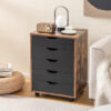 Specifications: Color: White/Black/Rustic Brown Material: Engineered wood Overall dimension: 19″ x 15.5″ x 26″ (L x W x H) Net weight: 42 lbs Weight capacity of top: 44 lbs Weight capacity of each drawer: 18 lbs Package includes: 1 x 5-drawer cabinet 1 x Instruction