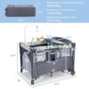 Specifications: Color: Black/Gray Material: Iron 210D Oxford cloth PP Overall product dimension: 43″ x 29.5″ x 32.5″ (L x W x H) Folding size: 30.5″ x 8.5″ x 8.5″ (L x W x H) Diaper table size: 31.5″ x 16.5″ x 6″ (L x W x H) Net weight: 27.5 lbs Maximum weight of basic playpen: 33 lbs Maximum weight of second layer: 22 lbs Maximum weight of diaper table: 22 lbs Recommended age: 0-36 months Package includes: 1 x 5-in-1 Baby nursery center 1 x Storage tray 1 x Music and toy rack 1 x Diaper changing table 1 x Mattress 1 x Safety strap 2 x Rocking tubes 1 x User manual