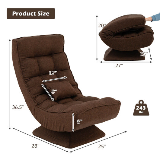 5-Level Adjustable 360?° Swivel Floor Chair with Massage Pillow-Brown – Color: Brown