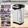 Specifications: Color: Black and metal silver Main material: PP + iron wire drawing + stainless steel Product size: 9″ x 12″ x 16″ (L x W x D) Capacity: 5.0 liters Rated voltage: 120 V Rated power: 680 W Frequency: 60 Hz Net weight: 24.3 lbs Package includes: 1 x Electric thermos pot 1 x Power cord 1 x Instruction