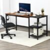 59 Inch Home Office Computer Desk with Removable Storage Shelves-Rustic Brown – Color: Rustic Brown