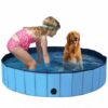 63 Inch Foldable Leakproof Dog Pet Pool Bathing Tub Kiddie Pool for Dogs Cats and Kids-Blue – Color: Blue