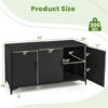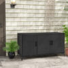 Specifications: Color Black/Mix BrownMaterial PE Rattan Metal Galvanized PipeProduct Size 53″ x 19.5″ x 28″Size of Cabinet Door(Left) 16.5″ x 22″Size of Cabinet Door(Middle & Right) 17″ x 22″Inner Size of Cabinet 17.5″ x 19″ x 11″Height Between Ground and Cabinet 4″Net Weight 49 lbsWeight Capacity of Top 100 lbsWeight Capacity of Shelf in the Cabinet 33 lbs