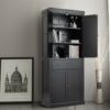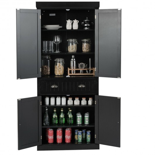 Cupboard Freestanding Kitchen Cabinet w/ Adjustable Shelves-Black – Color: Black