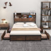 Specifications: Color Vintage Brown Material Metal MDF Overall Dimension 83″ x 55″ x 44″(Full) /88″ x 61.5″ x 44″(Queen) Dimension of Drawer 29.5″ x 19.5″ x 5.5″(Full) /29.5″ x 19.5″ x 5.5″(Queen) Height of Footboard 12.5″ Headboard Width 7″ Under-bed Space 8.5″ Outlet 125V/12A USB Port 5V/2A Power Cord Length 5 FT Recommended Mattress Full/Queen (not included) Recommended Mattress Thickness 8″-10″(not included) Net Weight 103.5 lbs(Full) /114.5 lbs(Queen) Weight Capacity of Bed Frame 400 lbs(Full) /485 lbs(Queen) Total Weight Capacity of Storage Headboard 140 lbs Weight Capacity of Each Drawer 22 lbs