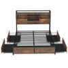 Specifications: Color Vintage Brown Material Metal MDF Overall Dimension 83″ x 55″ x 44″(Full) /88″ x 61.5″ x 44″(Queen) Dimension of Drawer 29.5″ x 19.5″ x 5.5″(Full) /29.5″ x 19.5″ x 5.5″(Queen) Height of Footboard 12.5″ Headboard Width 7″ Under-bed Space 8.5″ Outlet 125V/12A USB Port 5V/2A Power Cord Length 5 FT Recommended Mattress Full/Queen (not included) Recommended Mattress Thickness 8″-10″(not included) Net Weight 103.5 lbs(Full) /114.5 lbs(Queen) Weight Capacity of Bed Frame 400 lbs(Full) /485 lbs(Queen) Total Weight Capacity of Storage Headboard 140 lbs Weight Capacity of Each Drawer 22 lbs