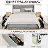 The bed frame is fully filled with sponge and covered with linen fabric which highly improve the softness. Also it has four large rolling drawers where you can store many clothes bed sheets toys pillows and so on. The whole frame is made of steel and it also comes with ample slats both realizing a strong load capacity of 660 lbs as well as sufficient support for your mattress without a box spring. As a reminder the recommended thickness is 8″-12″. When you lie on it and turn it over you will find there are few noises. Because an included mute bar greatly reduces frictions between slats and frame. Anti-slip and adjustable pads enhance overall stability for a wobble-free position. Finally you can install all slats only by your hands saving much time and effort.