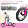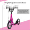 Made of reinforced carbon steel the youth scooter ensures high durability and lasting service life. The enhanced structure allows it to load users up to 165 lbs which suitable for users older than 8 years old. What’s more the handlebar height can be adjusted between 33″ to 35″ (over the safe limited line) meeting needs of different heights. With 2 V-type handbrakes it is easy to control the riding speed for safety enhancement. Plus 12″ air filled wheels offer smooth and steady riding on different kinds of terrain. Standing on the widened non-slip deck the rider can enjoy comfortable riding in balance. All in all this kick scooter is friendly for entertainment and trips.