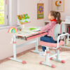 Height-Adjustable Kid’s Study Desk and Chair Set-Pink – Color: Pink