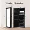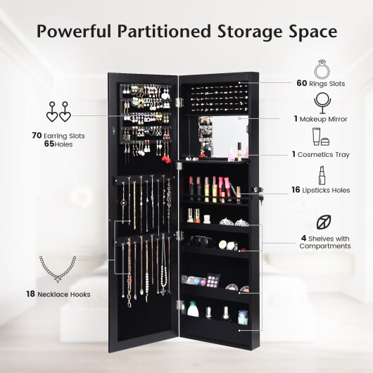 Lockable Wall Door Mounted Mirror Jewelry Cabinet w/LED Lights-Black – Color: Black