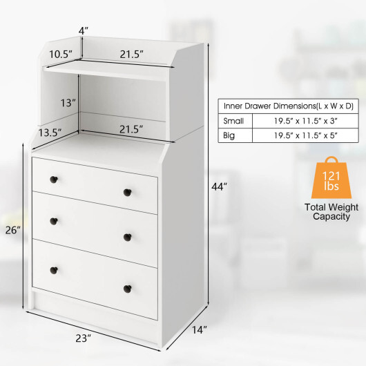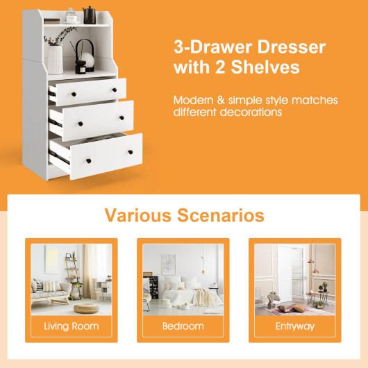 Modern Storage Dresser with Anti-toppling Device-White – Color: White