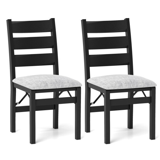 Modern Upholstered Folding Chairs Set of 2 with Comfy Backrest-Black – Color: Black