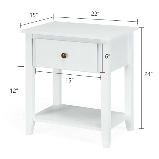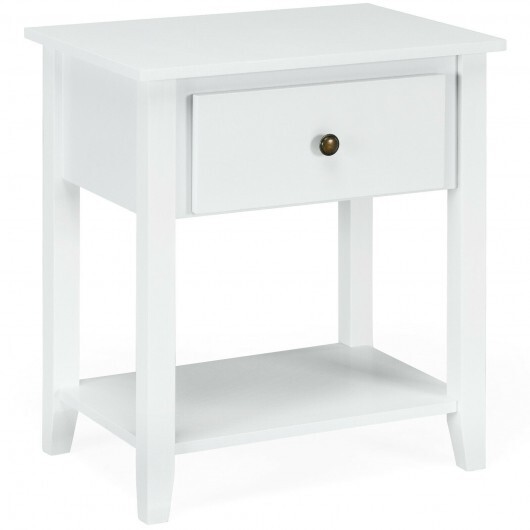 Nightstand with Drawer and Storage Shelf for Bedroom Living Room-Wine – Color: White