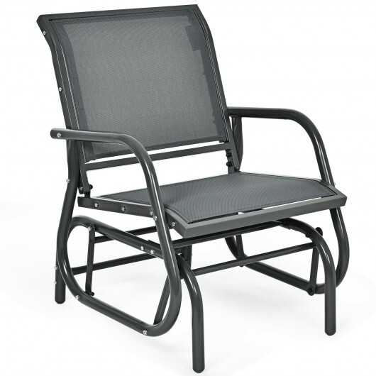 Outdoor Single Swing Glider Rocking Chair with Armrest-Gray – Color: Gray