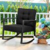 Patio Rattan Rocker Outdoor Glider Rocking Chair Cushion Lawn-Black – Color: Black