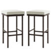 Patio Wicker Bar Stools Set of 2 with Seat Cushions and Footrest