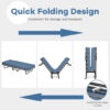 Specifications: Color of frame: Black Color of mattress: Navy/Beige Material: Steel Foam Polyurethane Overall dimension: 75″ x 32″ x 13″ (L x W x H) Folding dimension: 32″ x 13″ x 42″ (L x W x H) Mattress thickness?2.5″ Net weight: 33lbs Weight capacity: 440lbs Package Includes: 1 x Bed Frame 1 x Mattress 1 x Instruction