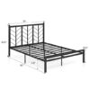 Specifications: Color Black Material Metal (Twin-Size) Overall Dimension 78″ x 40″ x 43.5″ Height of Footboard 16.5″ Height of Under-bed Space 11.5″ Recommended Mattress Thickness(Not Included) 8″-10″(Not Included) Net Weight 46 lbs Weight Capacity 620 lbs (Full-Size) Overall Dimension 78″ x 55″ x 43.5″ Height of Footboard 16.5″ Height of Under-bed Space 11.5″ Recommended Mattress Thickness(Not Included) 8″-10″(Not Included) Net Weight 59 lbs Weight Capacity 660 lbs (Queen-Size) Overall Dimension 83″ x 61″ x 43.5″ Height of Footboard 16.5″ Height of Under-bed Space 11.5″ Recommended Mattress Thickness(Not Included) 8″-10″(Not Included) Net Weight 62.5 lbs Weight Capacity 800 lbs