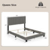 Specifications: Color Gray Material MDF Plywood Solid Wood Linen Fabric Sponge Overall Dimension 81″ x 64″ x 47″ Height of Footboard 9.5″ Height of Under-bed Space 3.5″ Net Weight 53 lbs Weight Capacity 550 lbs