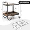 Specifications: Color: Rustic Brown Material: Engineered Wood Metal Overall Dimensions: 24″ x 17″ x 29″ (L x W x H) Metal Wire Rack Dimensions: 16″ x 8.5″ (L x W) Each Cell of Metal Wire Rack: 4.5″ x 4″ (L x W) Tabletop Height from Ground: 25″ Clearance Between 2 Tiers: 18″ Guardrail Height off Bottom Shelf: 2.5″ Weight Capacity of Tabletop: 70 lbs Weight Capacity of Metal Wire Rack: 25 lbs Weight Capacity of Large Compartment: 45 lbs Weight Capacity of Small Compartment: 25 lbs Net Weight: 21.5 lbs