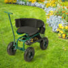 Rolling Garden Cart with Height Adjustable Swivel Seat and Storage Basket-Green – Color: Green