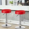 Set of 2 Adjustable Swivel Round Bar Stool Pub Chairs-Red – Color: Red