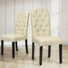 Set of 2 Tufted Upholstered Dining Chairs-Beige – Color: Beige