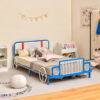 Twin Size Kids Bed Frame Car Shaped Metal Platform Bed with Upholstered Headboard – Color: Blue