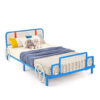 Twin Size Kids Bed Frame Car Shaped Metal Platform Bed with Upholstered Headboard – Color: Blue