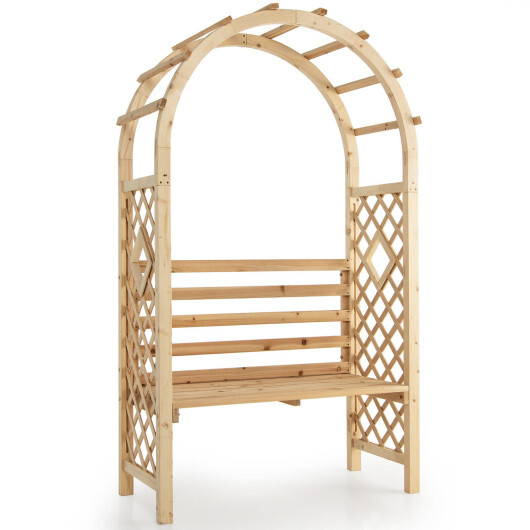 Wooden Garden Bench Arch Pergola Outdoor Arbor – Color: Natural
